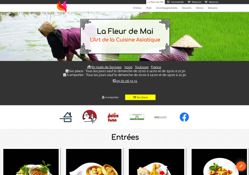 Site / Menu du restaurant La Fleur de Mai à Toulouse, spécialisé en cuisine asiatique.