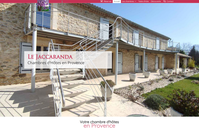 Site vitrine des chambres d'hôte Le Jaccaranda, située à Saint-Paul-les-Fonts (Gard), en plein cœur de la Provence.