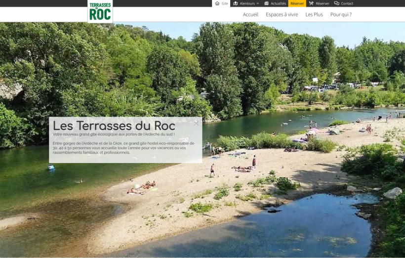 Site vitrine des Terrasses du Roc, un grand gîte écologique situé aux portes de l’Ardèche du Sud, entre les gorges de l’Ardèche et de la Cèze.